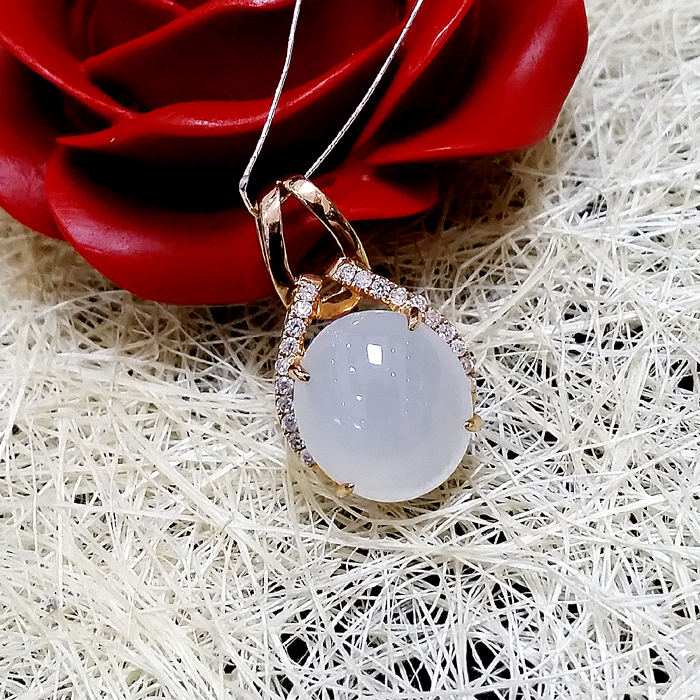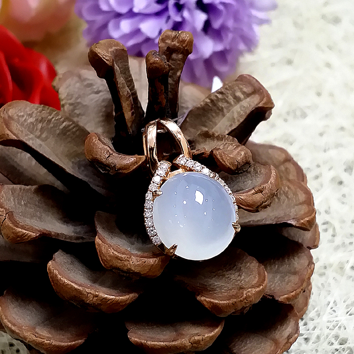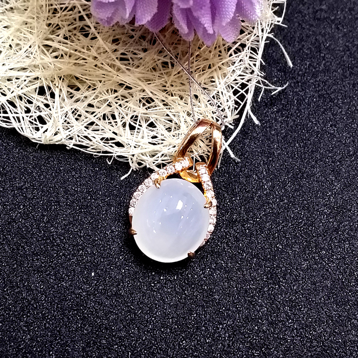 • 商品名称:宝裕名品 18K玫瑰金镶天然A货冰种翡翠吊坠 项坠 包邮送证书